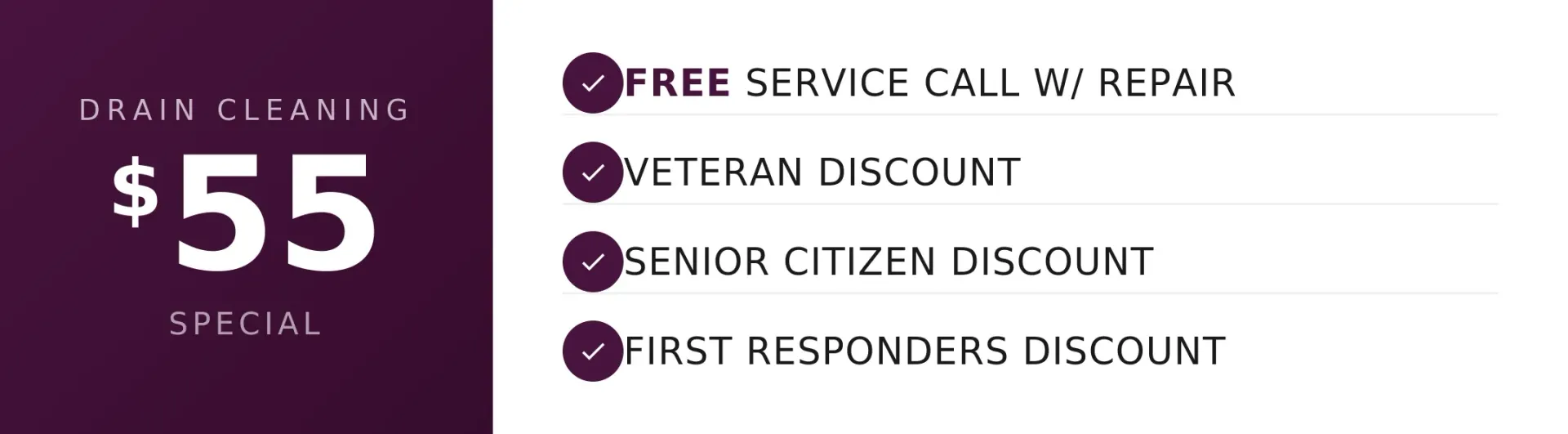 - $55 Drain Cleaning